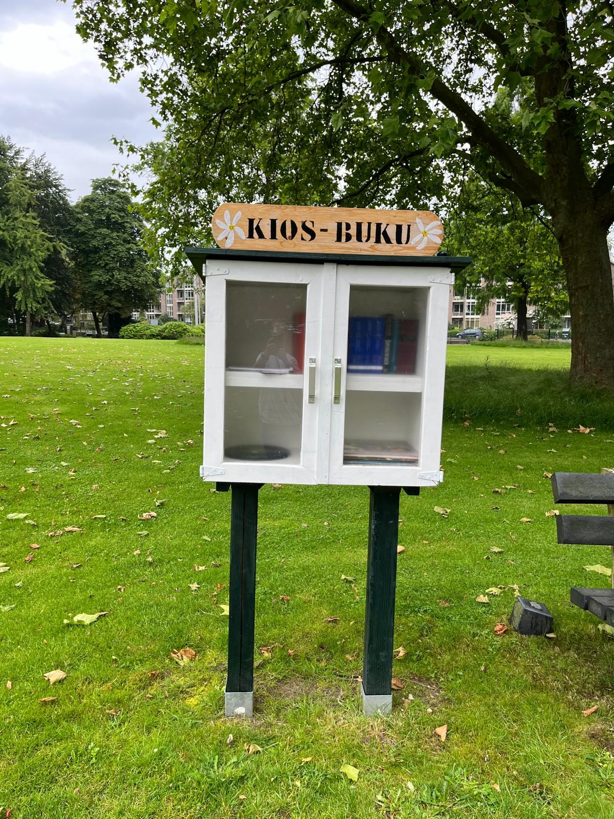 Een bewoner van Koninklijk Tehuis voor Oud-Militairen en Museum Bronbeek heeft de Kios-Buku afgelopen winter vervangen. Met ondersteuning van het Facilitair Bedrijf Defensie is een nieuwe kast gemaakt. De vorige boekenkast, ook gemaakt door een bewoner, was helaas niet meer te redden.