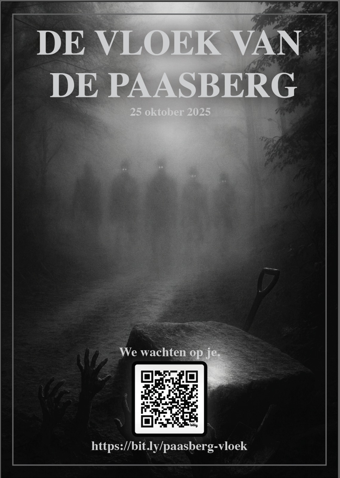 💀 De vloek is terug... Op 25 oktober herleeft het kwaad op de Paasberg. Durf jij de tocht te lopen? 👉 Meld je aan via de qr code hieronder of via de link: