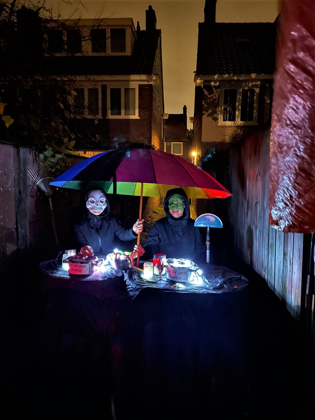 30-10-2021 - Zaterdag 30 oktober werd er weer ouderwets gegriezeld op de Paasberg. Er liepen griezels rond en daartussen moesten kinderen een cijfercode oplossen. 100 Jaar geleden was er op de Paasberg een vliegtuig neergestort met daarin John die de formule had gevonden voor het antivirus tegen de dodelijke ziekte DIVOC91. Lukt het de kinderen nu om de formule te kraken en de oplossing te vinden? Zo'n 130 kinderen probeerden de zombies en griezels te ontlopen. Uiteindelijk bleken maar 4 van de 29 groepjes de oplossing te hebben: zombies bestaan alleen in je kop.