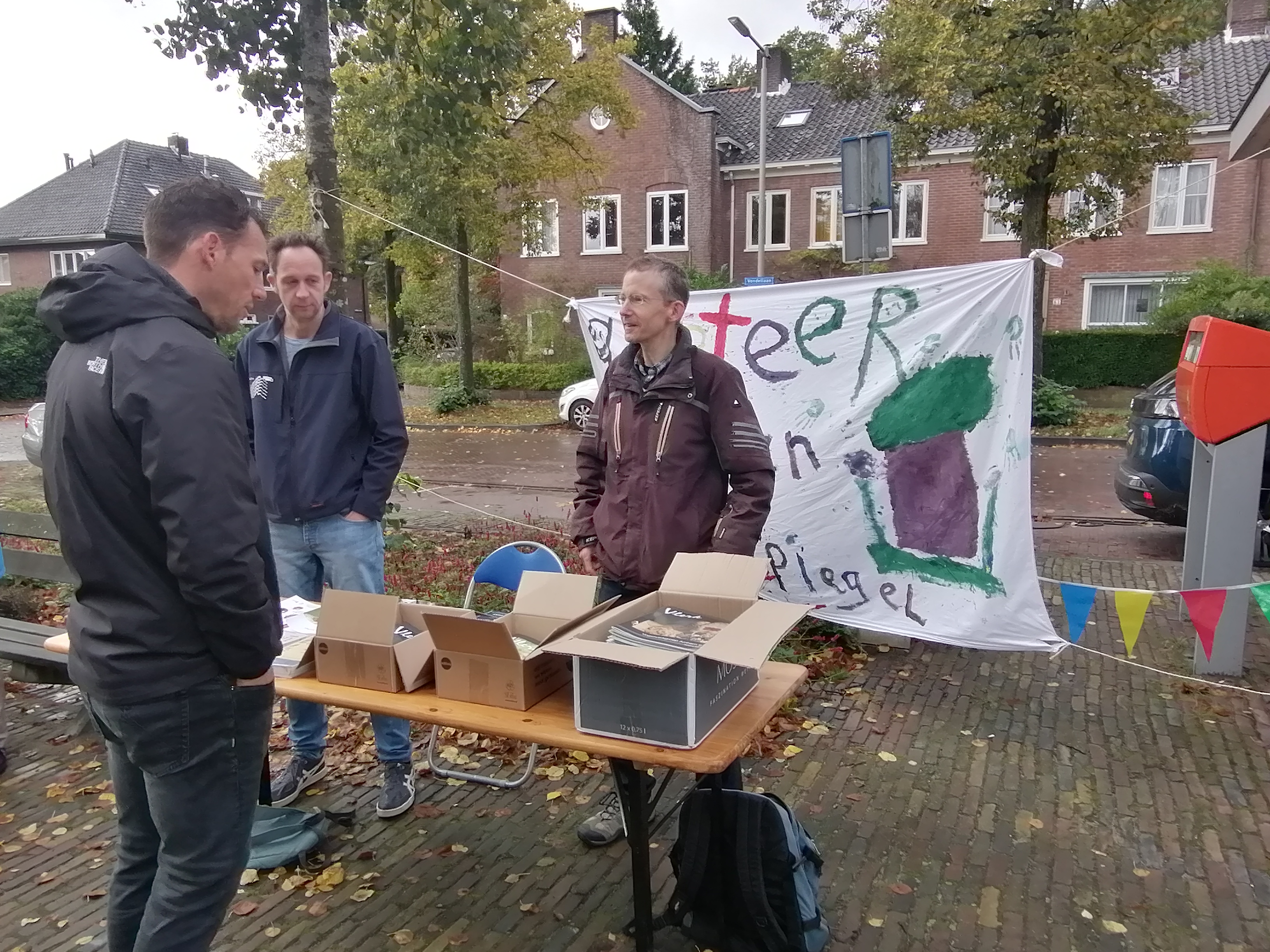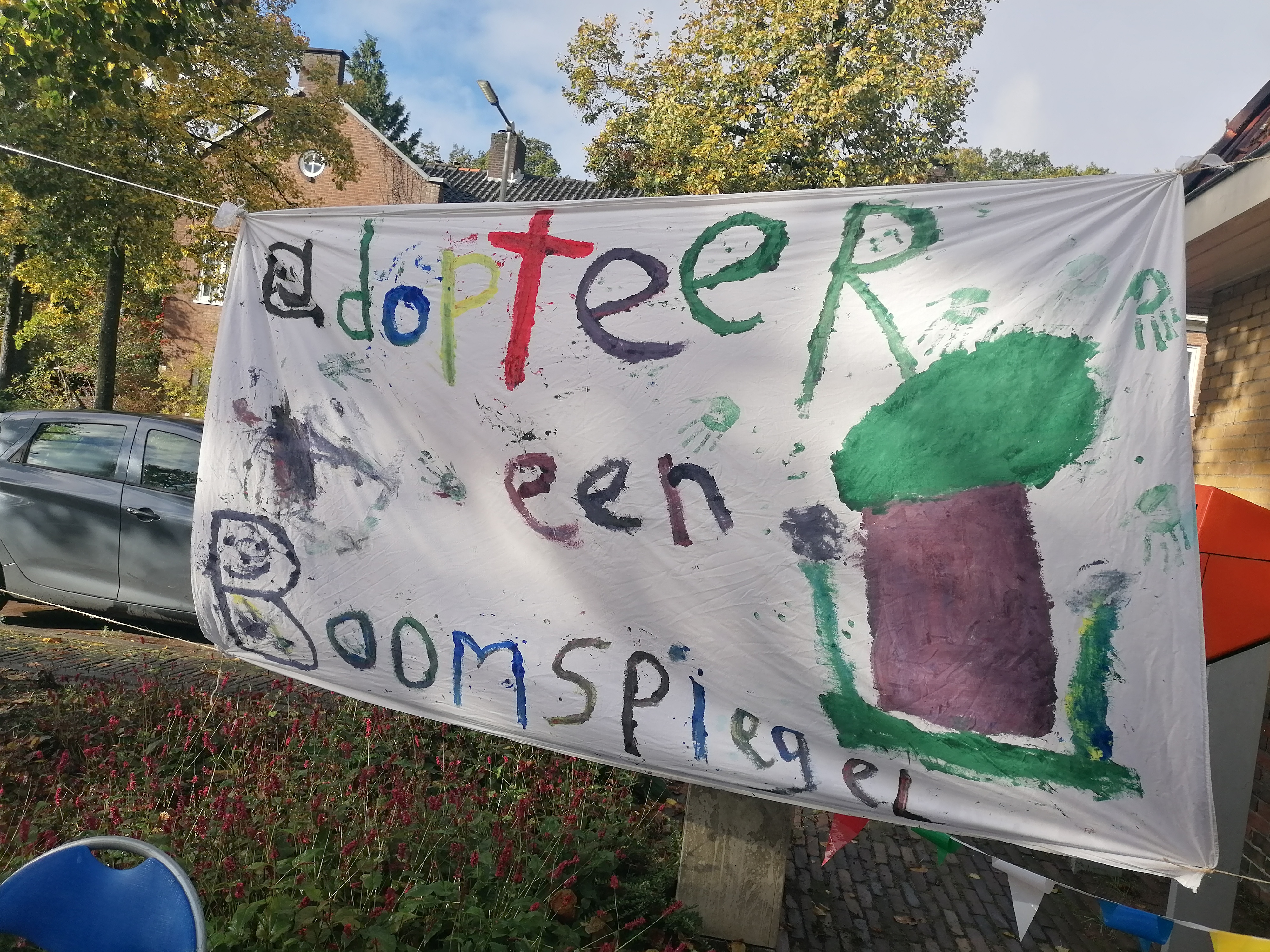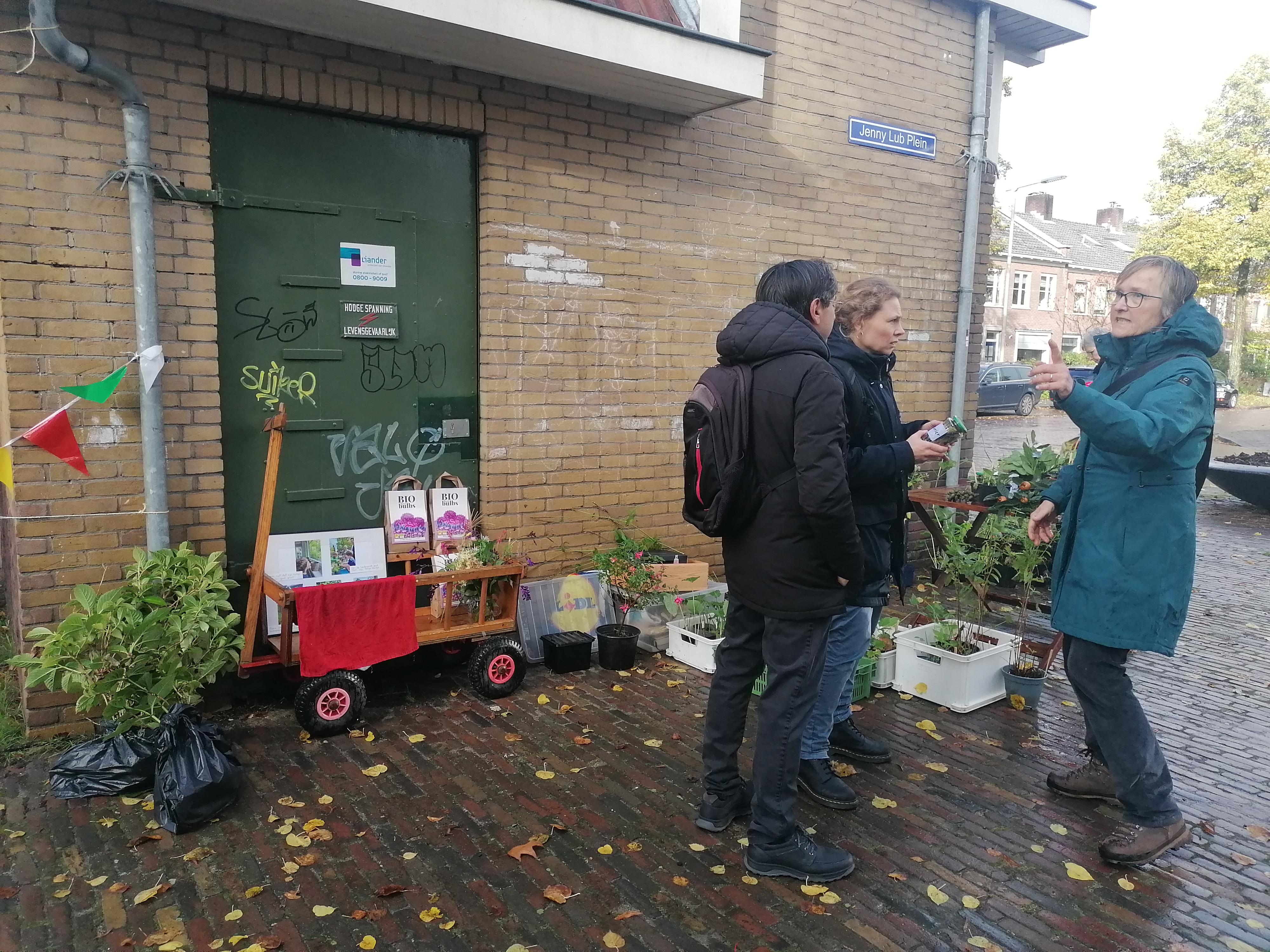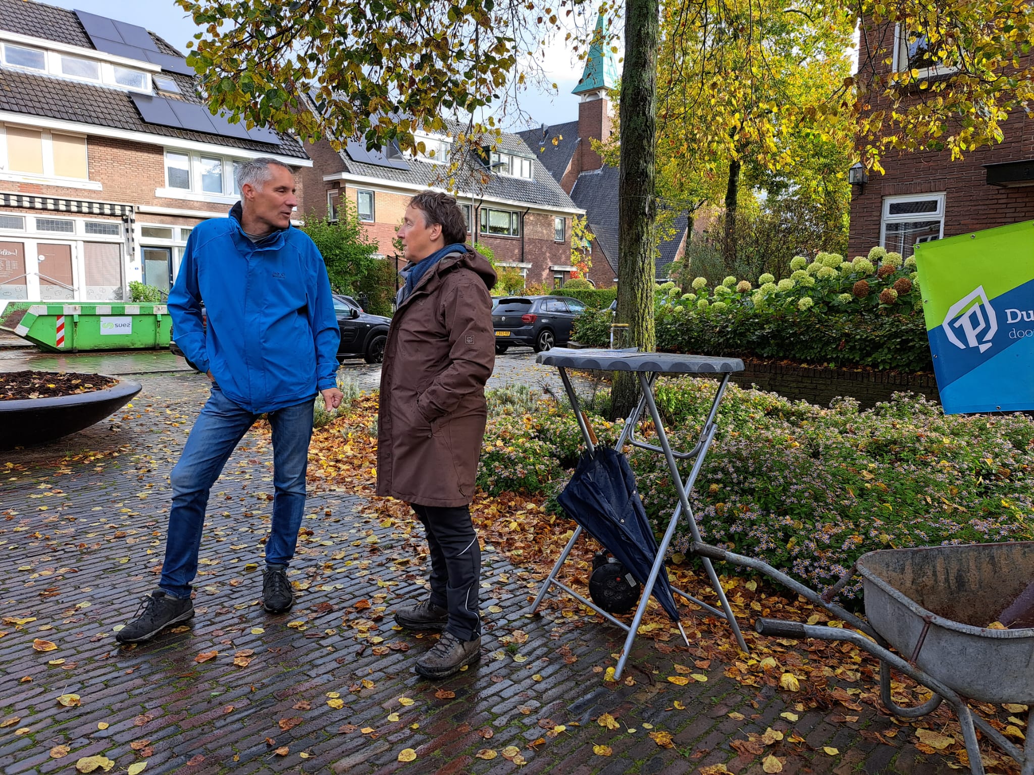 21-10-2023 - Bijna 30 wijkbewoners hebben zich tijdens de herfstmarkt opgegeven om een boomspiegel te adopteren in de wijk. Een groot succes om onze wijk nog mooier en groener te maken. Ze kregen een zakje bloembollen en kunnen gratis compost krijgen via de gemeente. De herfstmarkt op zaterdag 21 oktober begon wat aarzelend. Het eerste half uur was er door de regen bijna geen aanloop maar in de loop van de ochtend kwamen toch nog aardig wat wijkbewoners langs en lieten zich informeren door Duurzaam Paasberg, Paasberg zoemt en de Vogelwerkgroep Arnhem. En natuurlijk plantjes ruilen en kopen. Maar vooral was het erg gezellig bijpraten met een kopje koffie en de kinderen konden met herfstbladeren een egel maken.