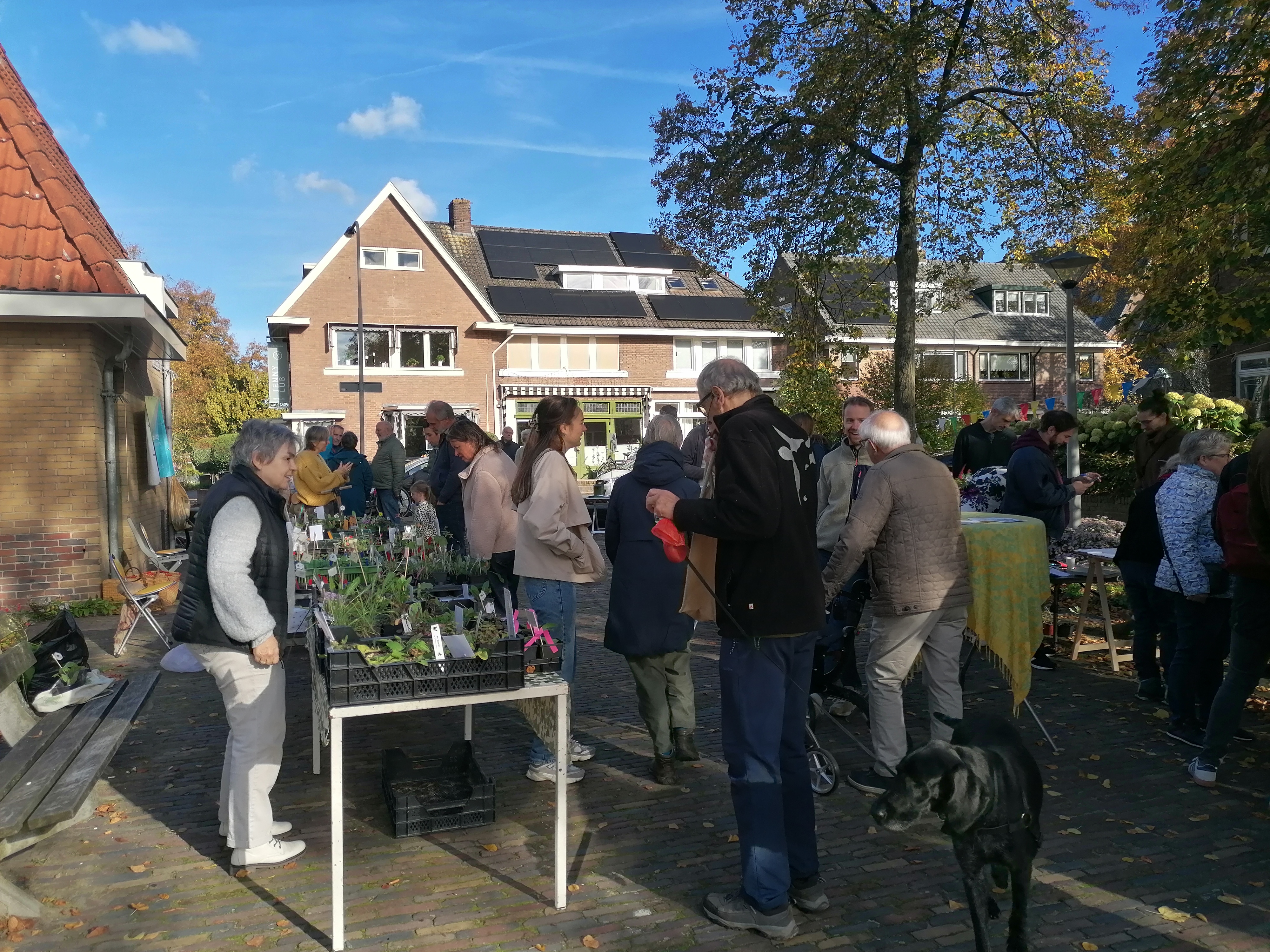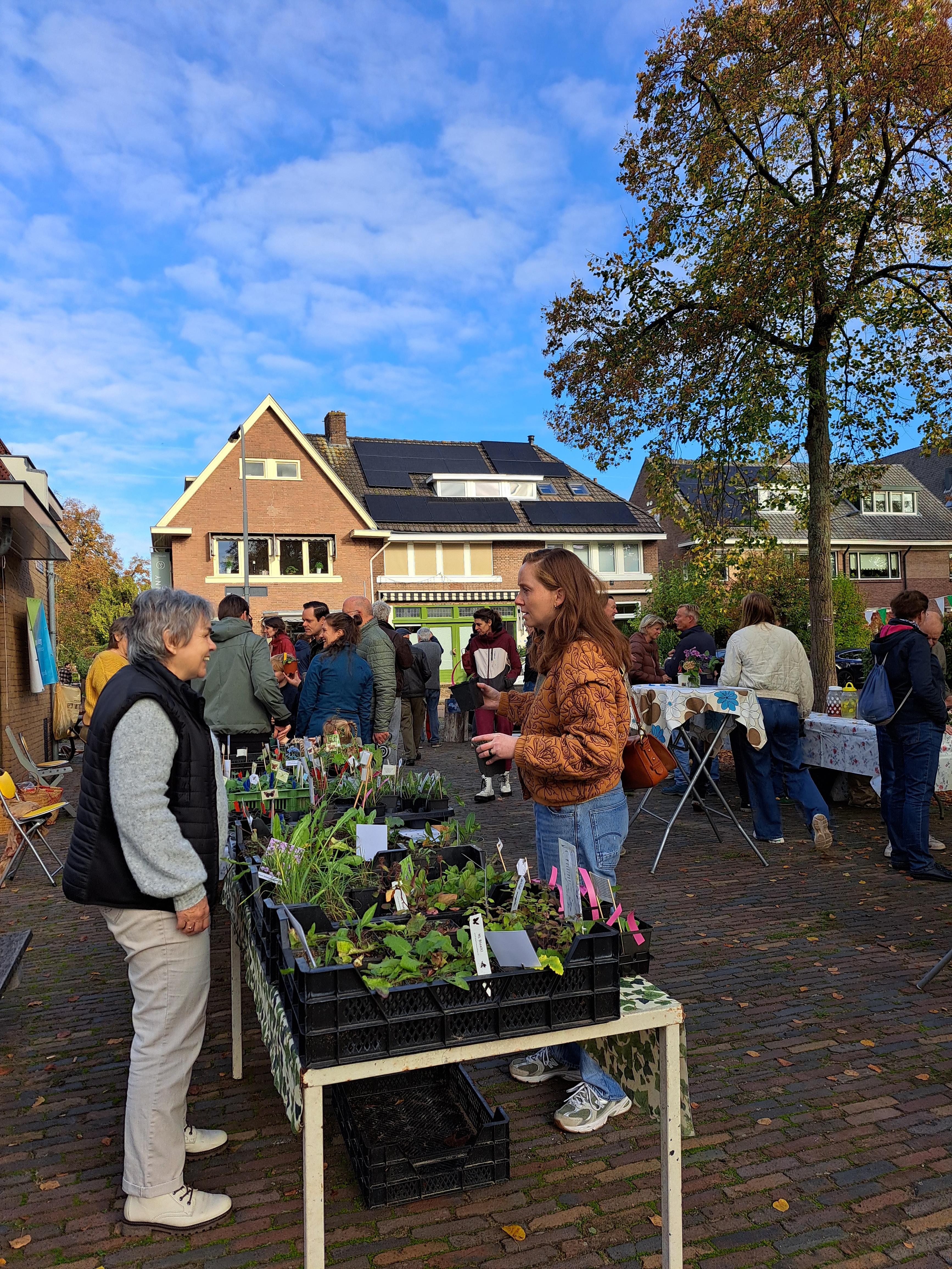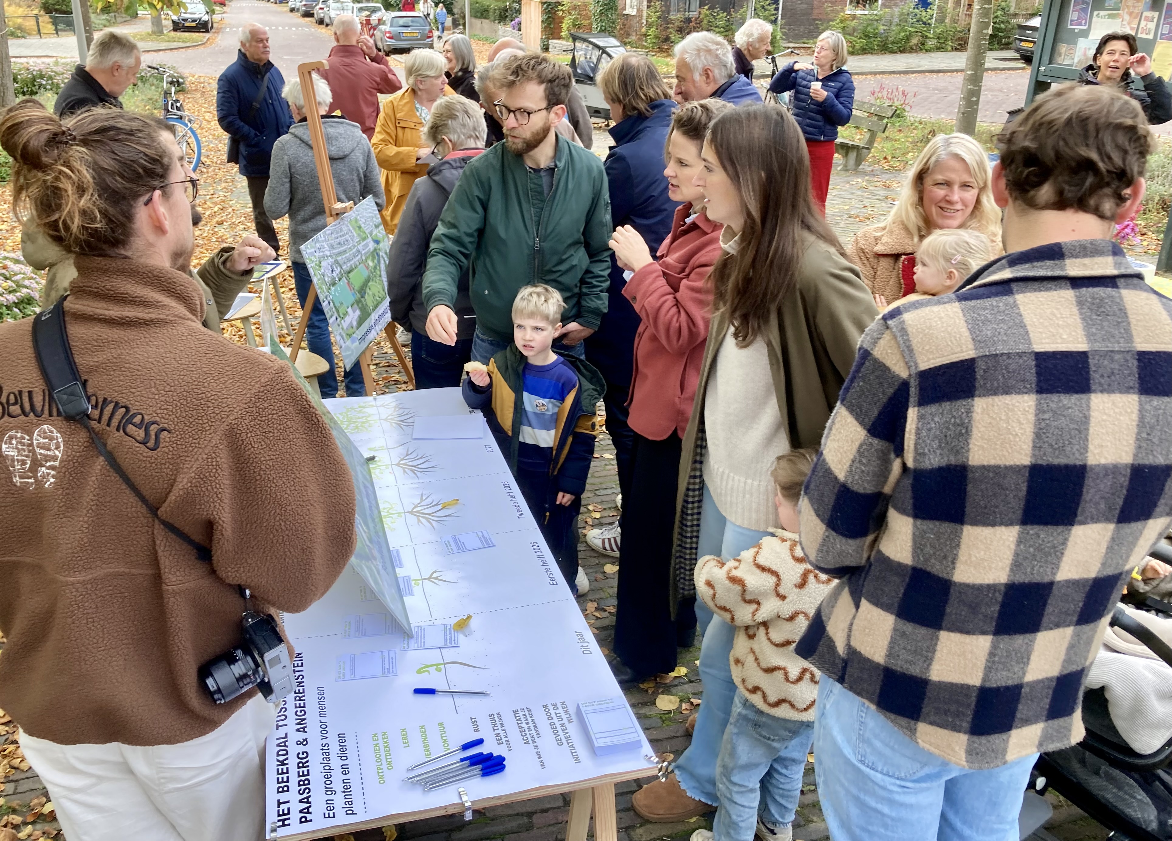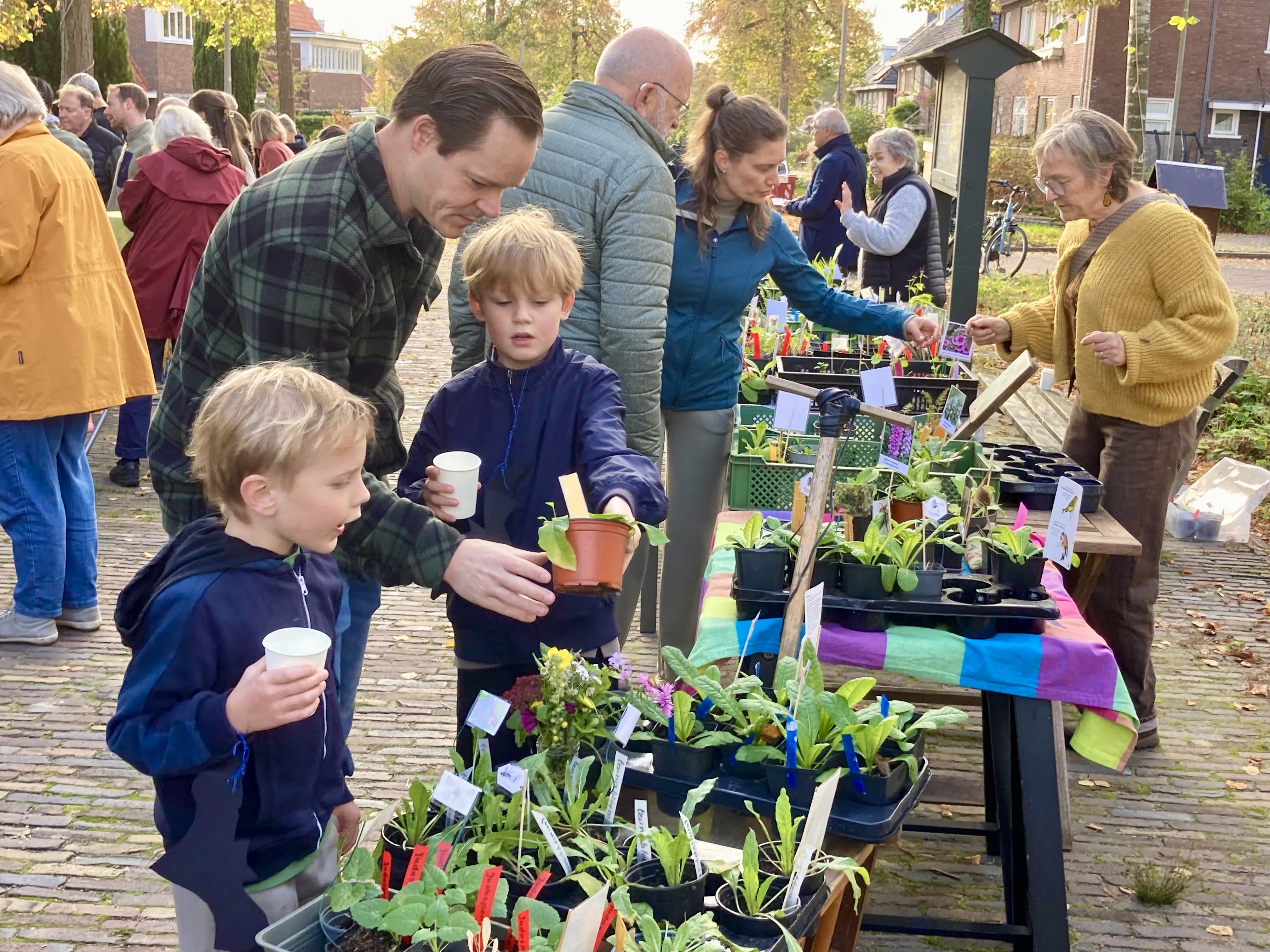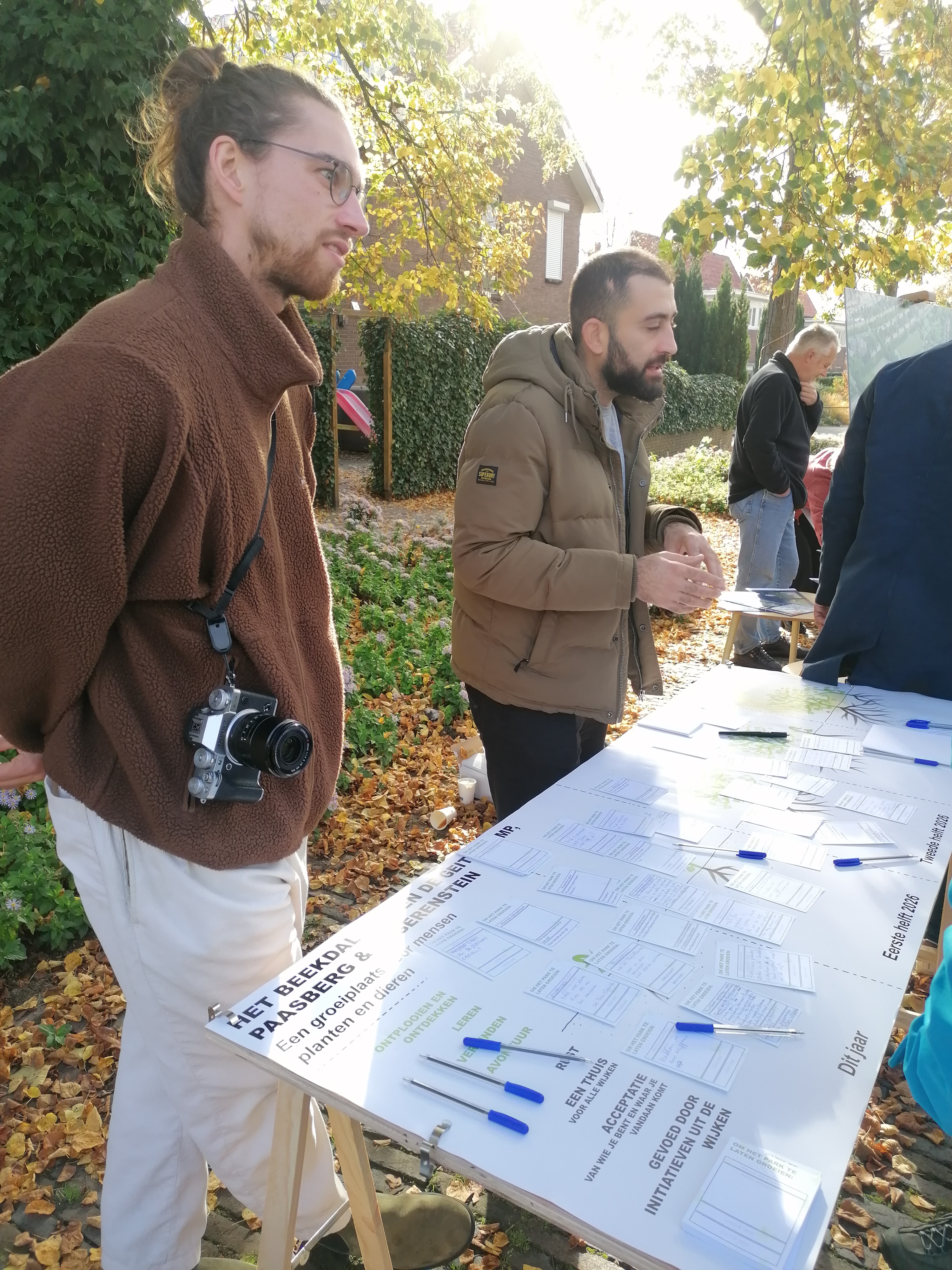 18-10-2025 - Zaterdagochtend 18 oktober was het een gezellige drukte op de herfstmarkt. Onder het genot van een kopje koffie of thee kwamen veel wijkbewoners even langs om een praatje te maken in het herfstzonnetje, plantjes te ruilen of te halen of informatie in te winnen bij Duurzaam Paasberg. Kinderen konden knutselen of mee met een 'wildsafari' door de wijk. Maar men kwam ook om het laatste nieuws te horen over het project Park Beek op de Paasberg. Vanuit de gemeente waren een aantal betrokkenen van het project aanwezig om uitleg te geven over de plannen voor het beekdal. En om tips en ideeën op te halen bij de wijkbewoners