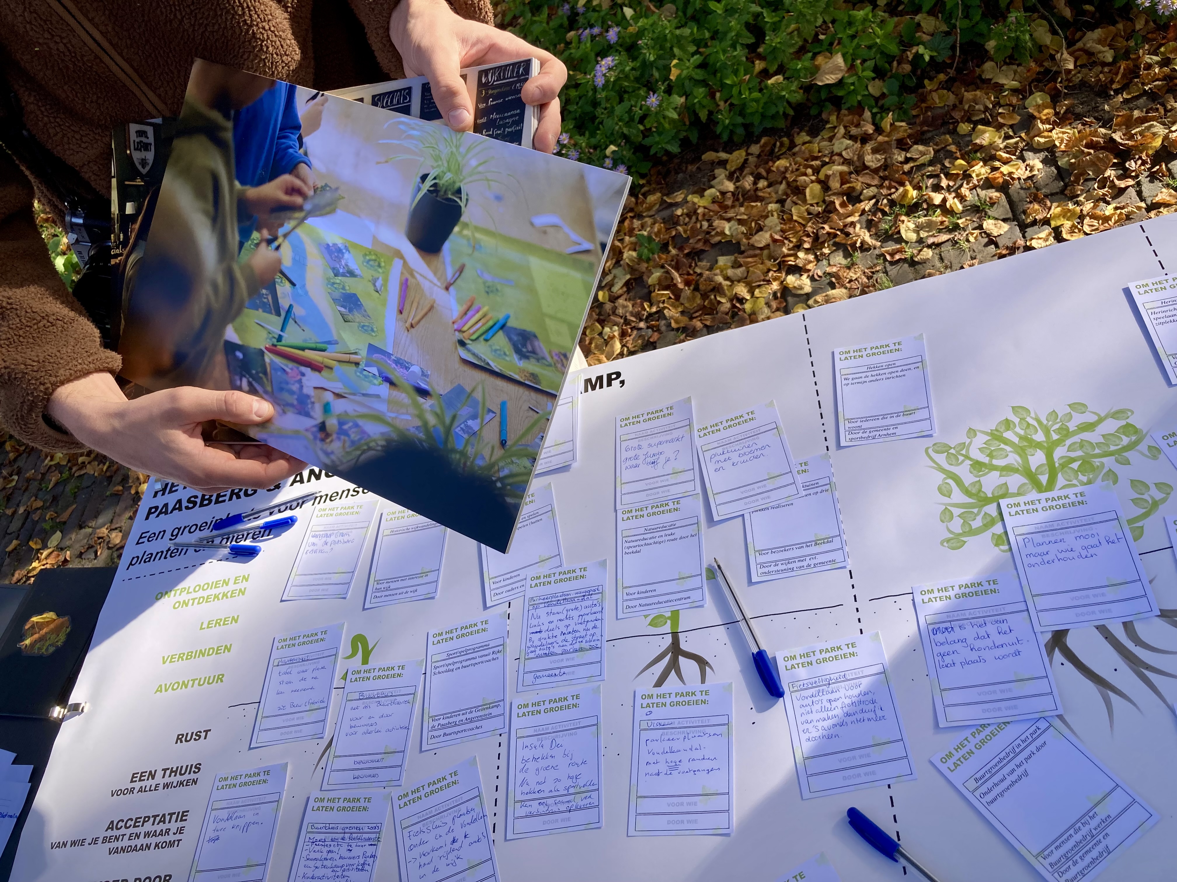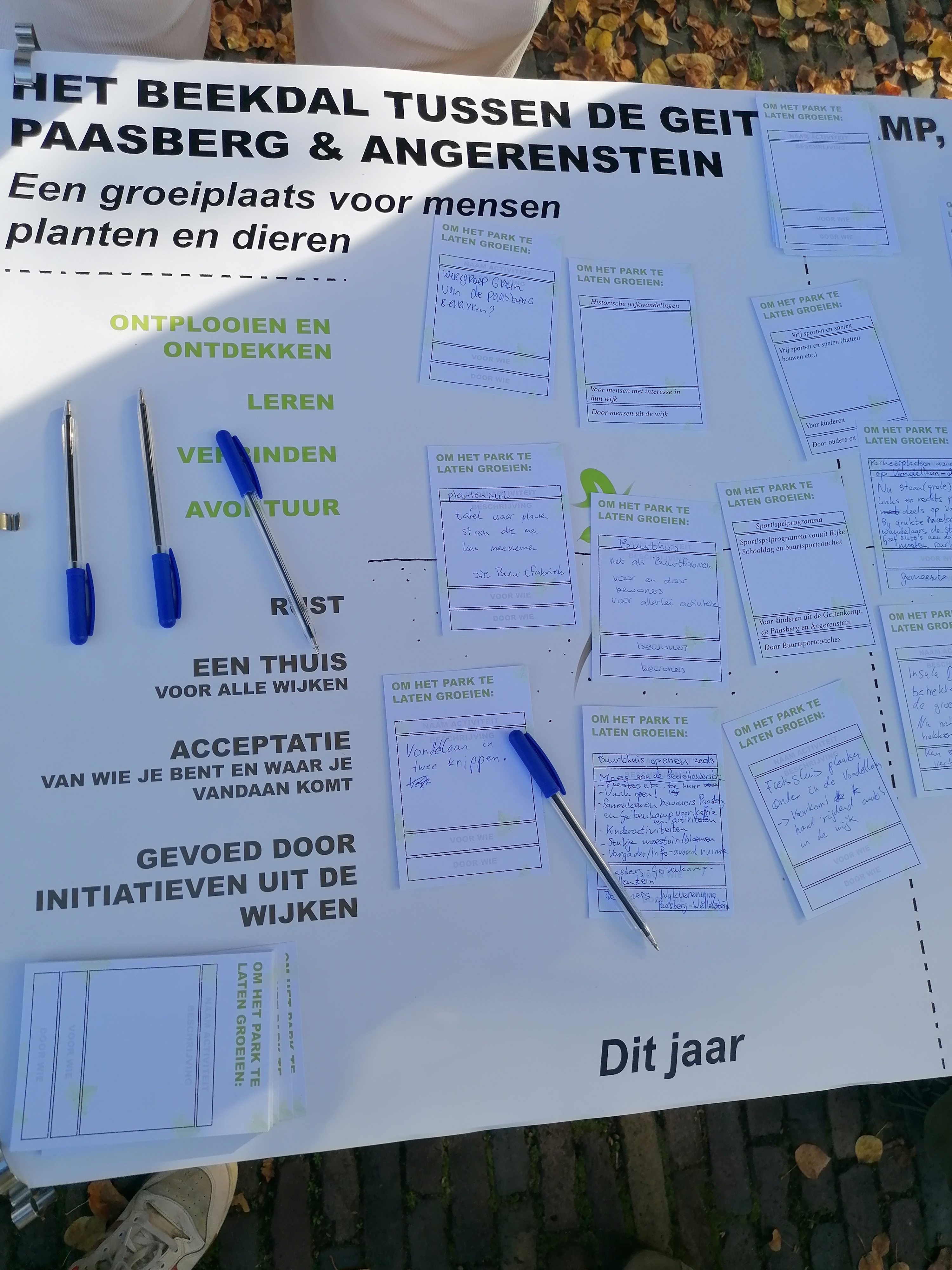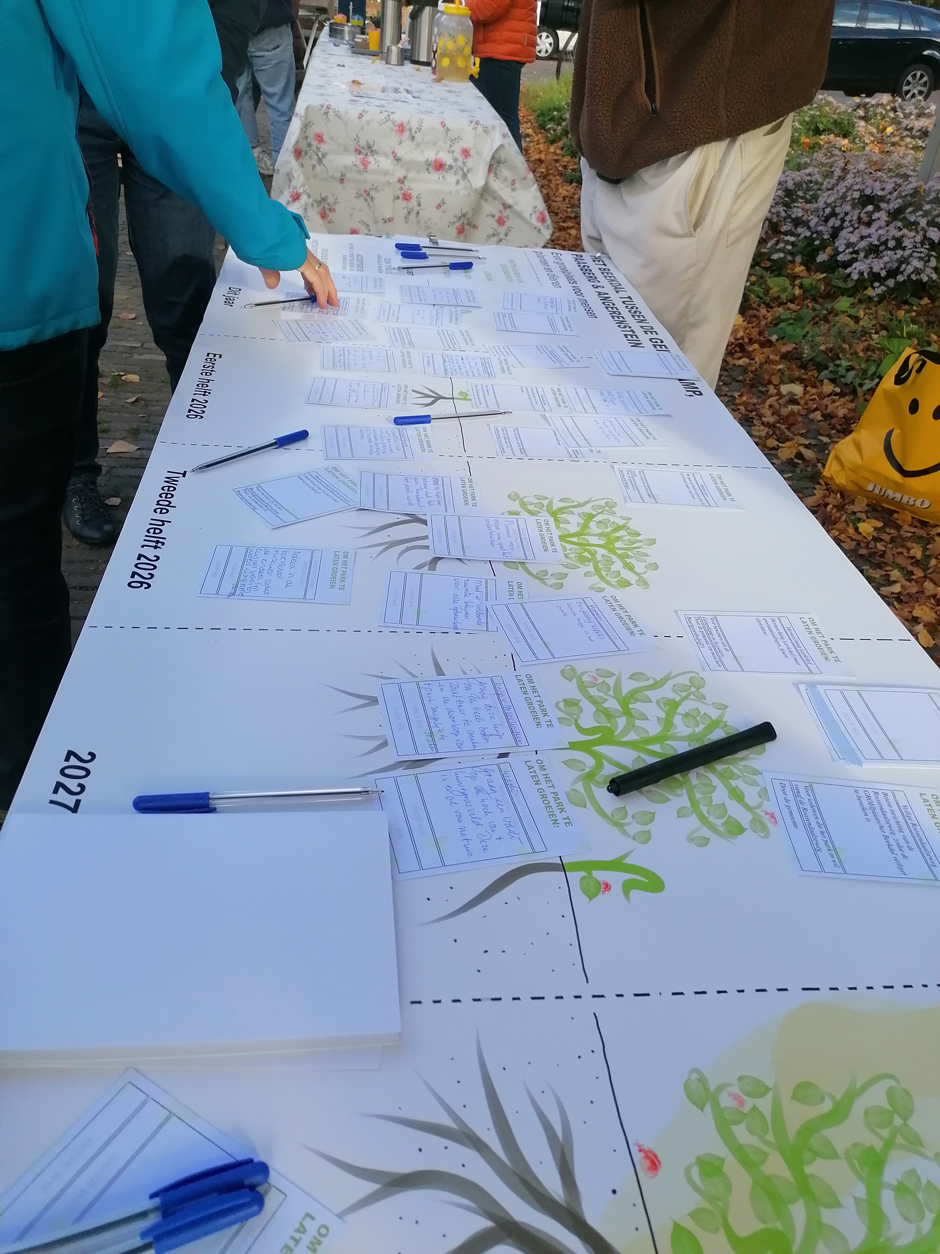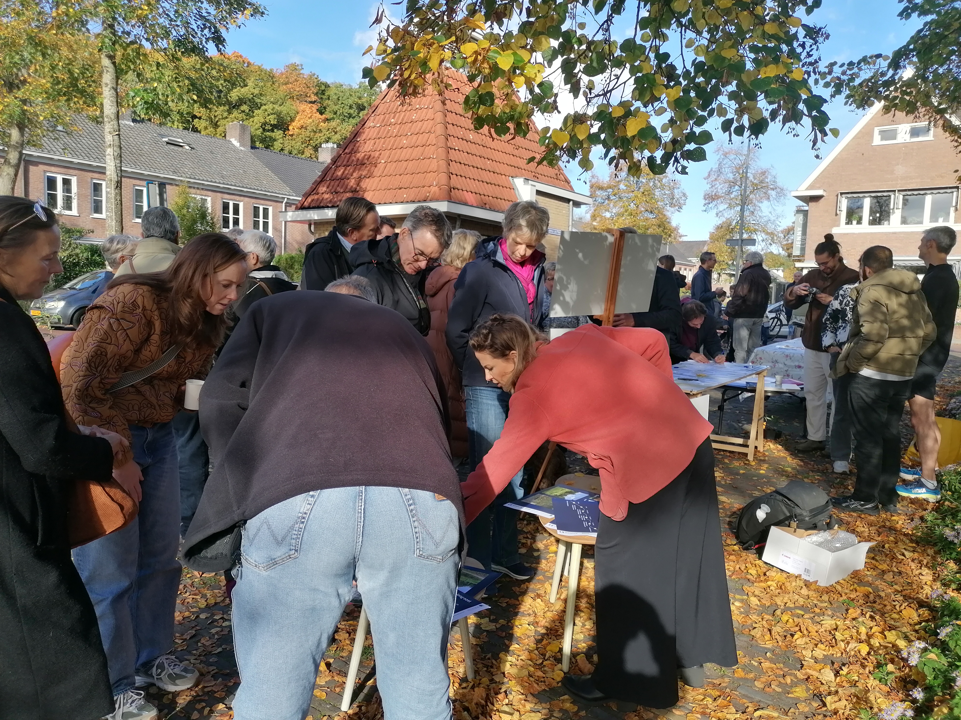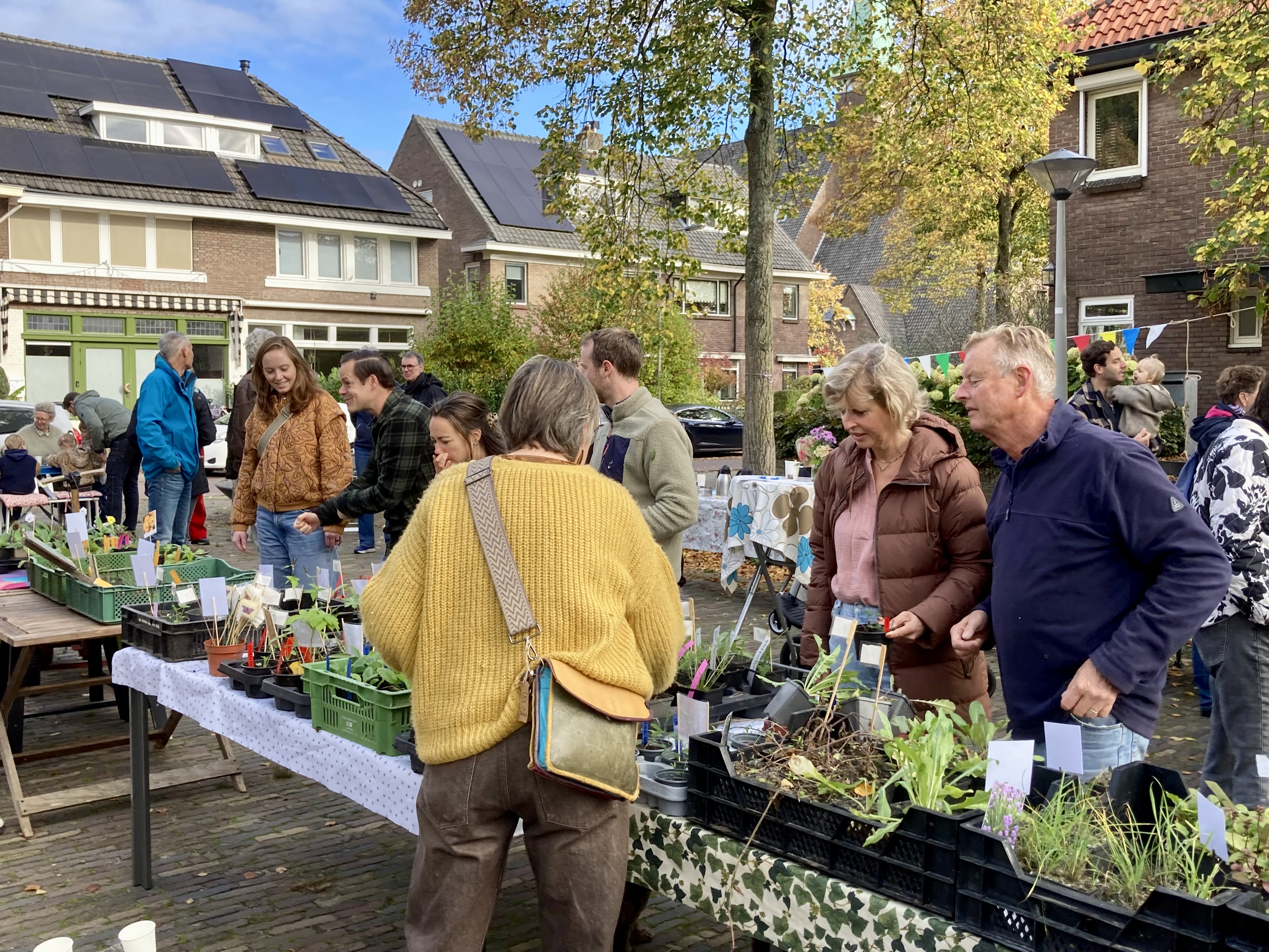 18-10-2025 - Zaterdagochtend 18 oktober was het een gezellige drukte op de herfstmarkt. Onder het genot van een kopje koffie of thee kwamen veel wijkbewoners even langs om een praatje te maken in het herfstzonnetje, plantjes te ruilen of te halen of informatie in te winnen bij Duurzaam Paasberg. Kinderen konden knutselen of mee met een 'wildsafari' door de wijk. Maar men kwam ook om het laatste nieuws te horen over het project Park Beek op de Paasberg. Vanuit de gemeente waren een aantal betrokkenen van het project aanwezig om uitleg te geven over de plannen voor het beekdal. En om tips en ideeën op te halen bij de wijkbewoners